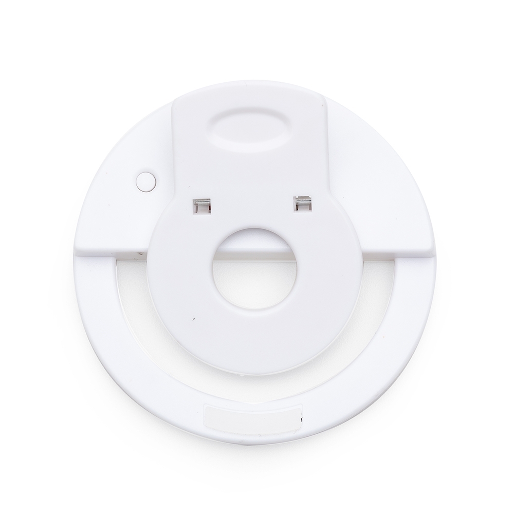 Anel de iluminação para celular, utilizado para fotos em formato selfie. “Ring light” plástico no formato “presilha” para encaixe, possui três estágios de iluminação acionados pelo botão superior. Acompanha cabo USB para carregamento.