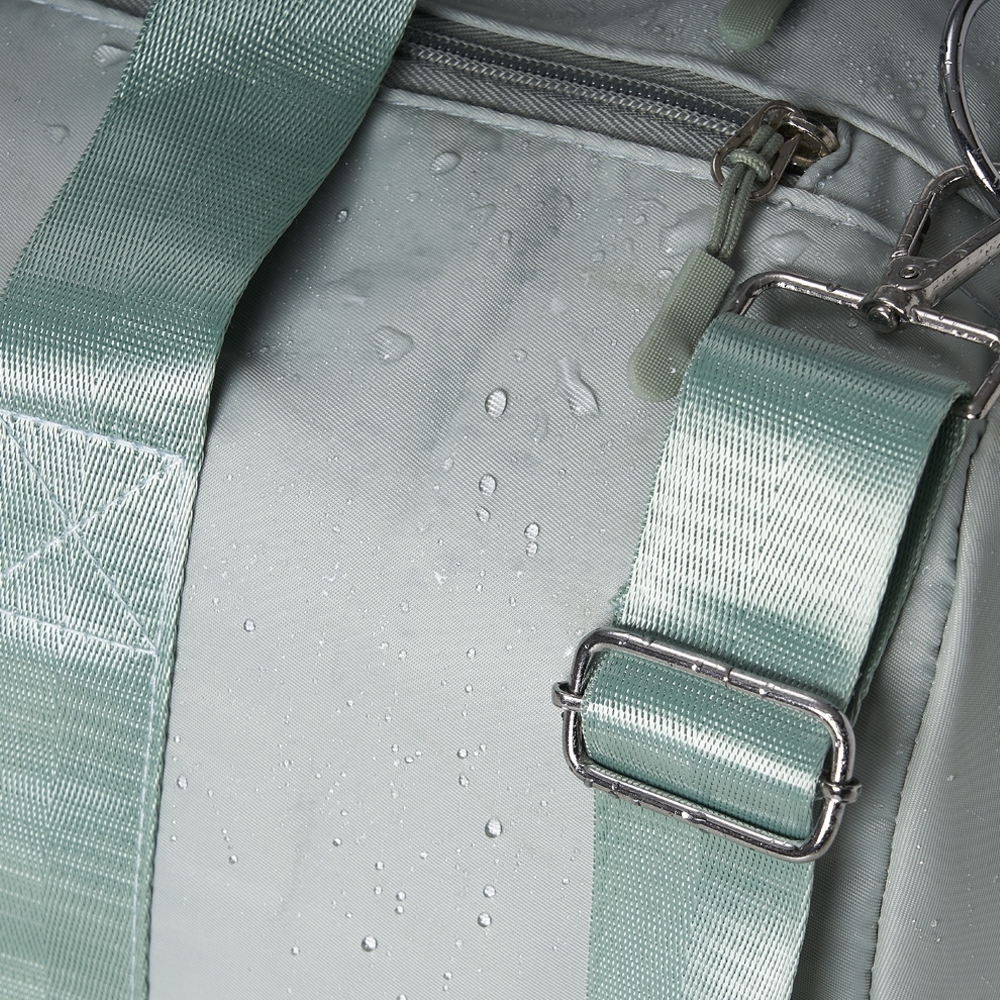 Bolsa esportiva de 35 litros em poliéster resistente à água com cinco compartimentos, sendo dois deles exclusivos para tênis e itens molhados. Contém bolso para encaixe em malas de viagem, bolso interno, alça de mão lateral extra e acompanha alça transversal.