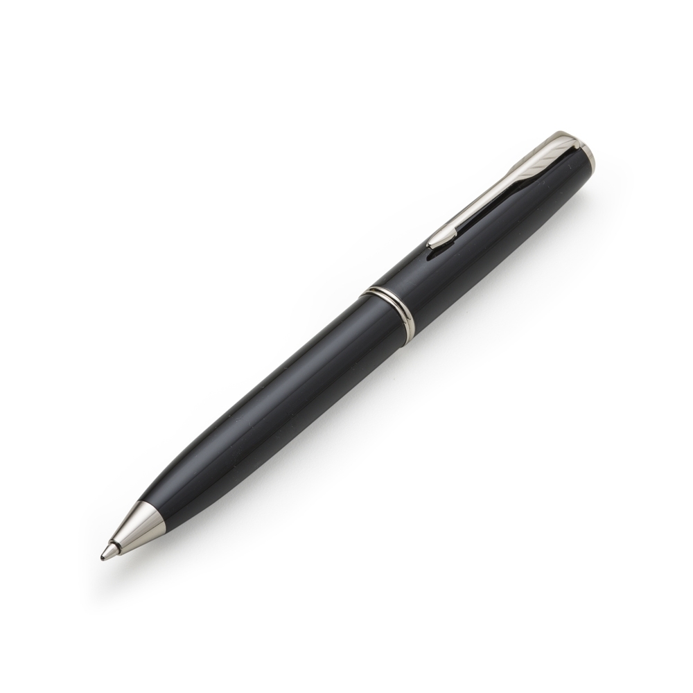 Caneta metálica com carga esferográfica azul e acionamento por rotação. OBS.: PEDIDO APENAS MÚLTIPLO DE 15 PEÇAS!