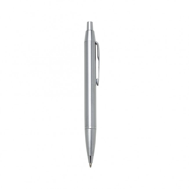 Caneta metálica com carga esferográfica azul e acionamento por clique. OBS.: PEDIDO APENAS MÚLTIPLO DE 50 PEÇAS!