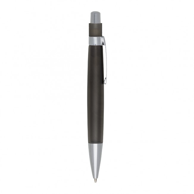 Descrição: Caneta plástica com carga esferográfica azul e acionamento por clique.