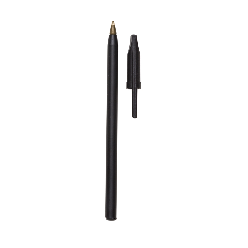 Caneta plástica com tampa. Carga esferográfica azul.