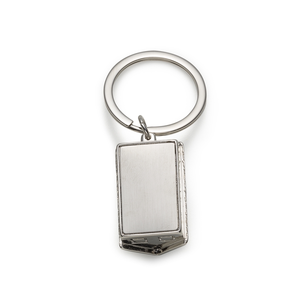 Chaveiro 3D formato casa brilhante, contém detalhes em relevo. Parte inferior com chapa inox para personalização.
