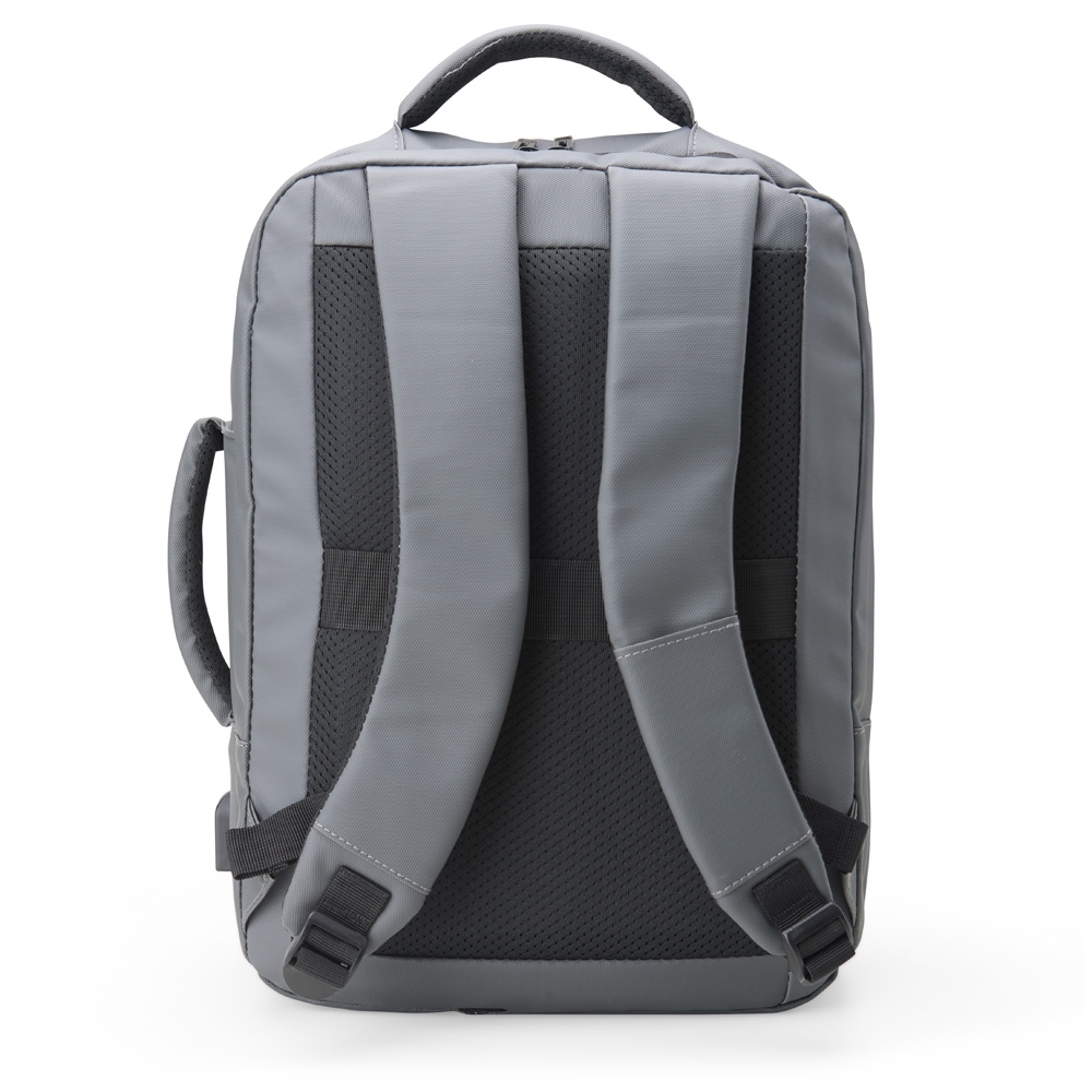 Mochila em couro sintético 23 litros resistente à água com quatro compartimentos, sendo o principal com bolso para notebook 15,6 e tablet 10. Com divisórias internas para acessórios, a mochila possui suporte externo usb, alça para encaixe em malas de viagem e duas alças de mãos, sendo uma delas lateral para o transporte da mochila no modo pasta.
