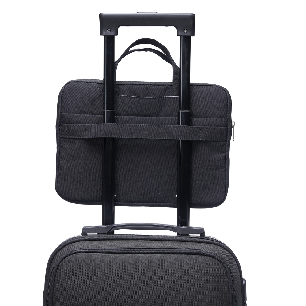 Pasta executiva para tablet e notebook até 13 polegadas a prova d’água. Confeccionada em poliéster a pasta tem o compartimento principal com o interior aveludado para maior proteção do notebook, além de 6 compartimentos externos e uma alça para encaixe em mala de viagem.