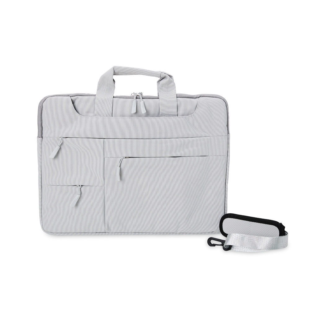 Pasta para notebook 15’6 em nylon impermeável com quatro compartimentos, sendo o principal para notebook. Com dois bolsos para ocultar as alças de mãos, a pasta contém interior forrado e almofadado, alça para encaixe em malas de viagem e acompanha alça transversal.