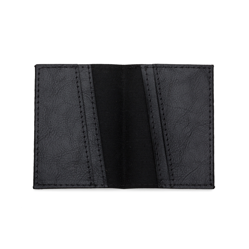 Porta cartão em couro sintético com quatro divisórias em diagonal.