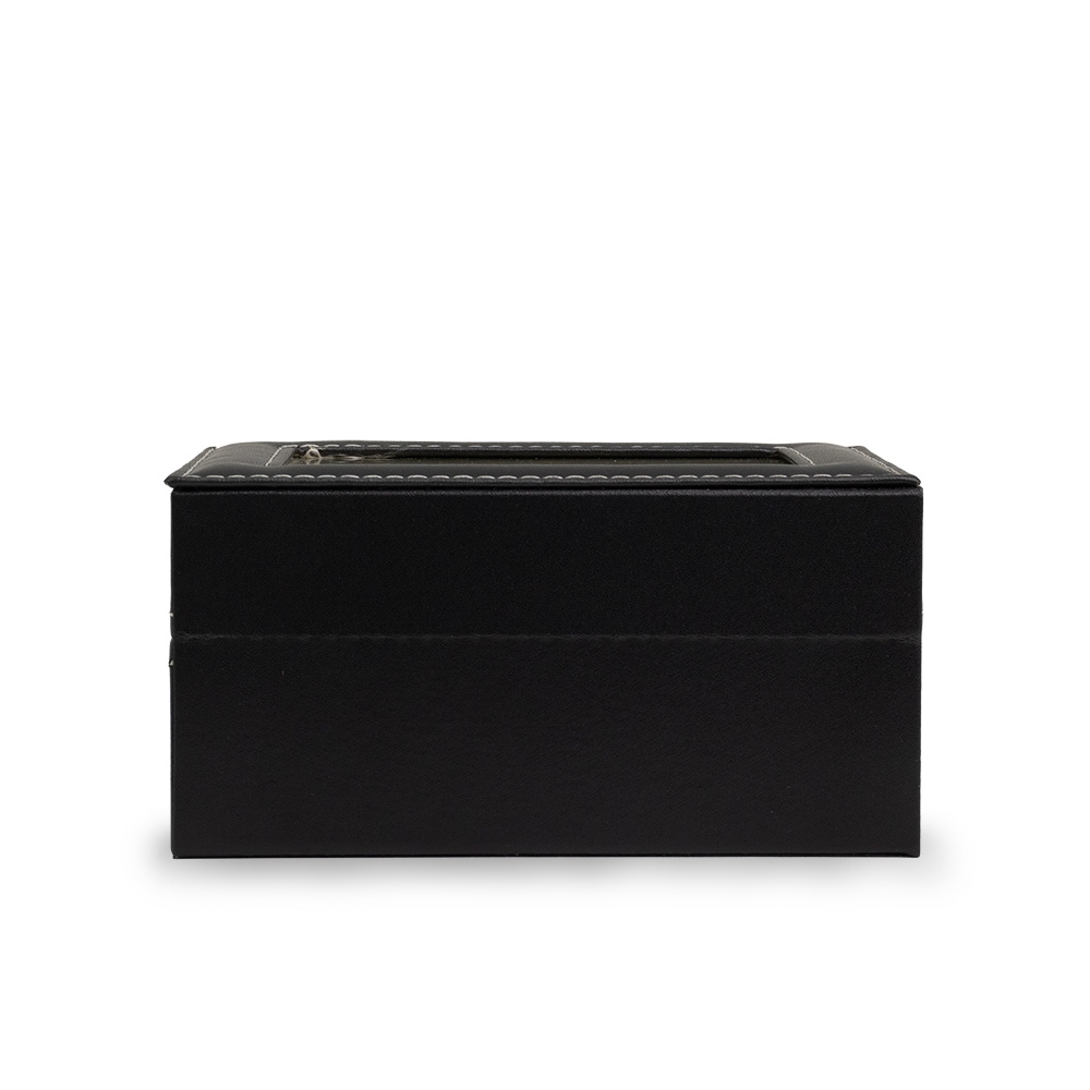 Porta relógios em couro sintético com revestimento aveludado. Possui três divisórias com almofadas para relógios, visor em acrílico e fechadura com trava.