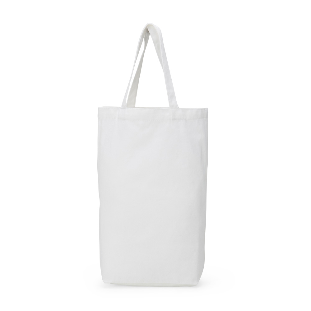 Sacola de algodão com alças costuradas na parte interna.